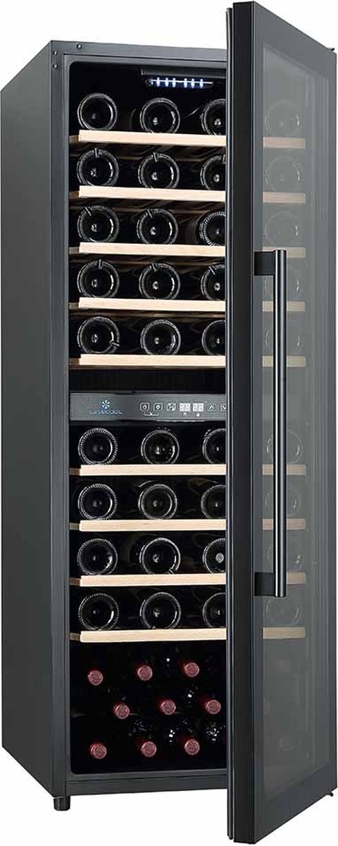 - Uitstekende capaciteit: Ruimte voor wel 77 flessen wijn, georganiseerd op negen beukenhouten leggers die je eenvoudig kunt verschuiven of uittrekken voor een optimale indeling.