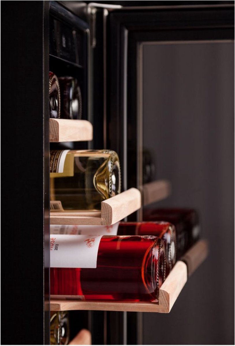 De wijnkoelkast is geschikt voor gebruik in diverse omgevingen, met een geluidsniveau van slechts 39 dB en een flexibel links- of rechtsdraaiend scharnier. Met een snoerlengte van 2 meter en een gewicht van 36 kg is hij eenvoudig te plaatsen waar jij wilt. Daarnaast biedt hij ruimte voor vier plateaus in hout, een uitneembare wijnkoelerlade en een ingebouwd ventilatiesysteem voor optimale koeling.