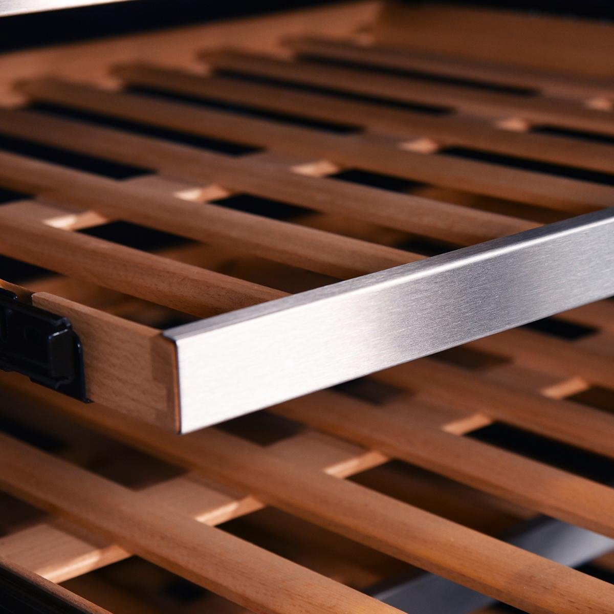 - No Frost systeem: Automatisch ontdooien voorkomt ijsvorming en houdt de wijnklimaatkast onderhoudsvriendelijk.
