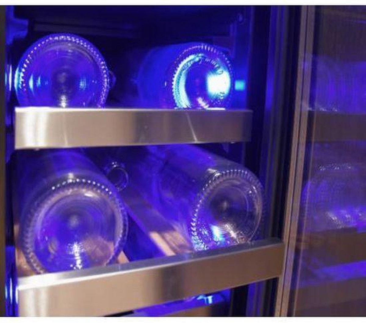 Het glazen deur met UV-bescherming beschermt je kostbare wijn tegen schadelijke zonlichtstralen terwijl het een moderne uitstraling geeft. De stijlvolle roestvrijstalen handgreep benadrukt de strakke afwerking en past naadloos binnen elk interieur. Dankzij de mogelijkheid om de koelunit vrijstaand of ingebouwd onder het werkblad te plaatsen, geniet je van maximale flexibiliteit in je wijnruimte.