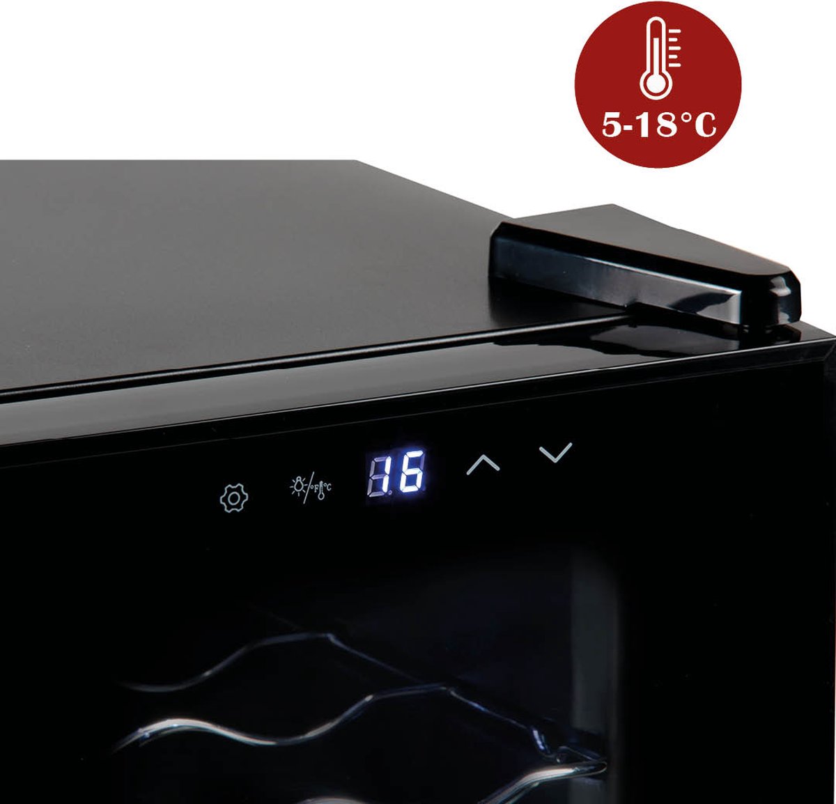 De glazen deur met ingebouwde LED-verlichting niet alleen beschermt je wijn tegen lichtschade, maar geeft je ook direct inzicht in je voorraad. Dankzij de handige touchbediening op de deur stel je heel eenvoudig de gewenste temperatuur in tussen 5°C en 18°C, afgestemd op het soort wijn dat je wilt bewaren. Het overzichtelijke LED-display toont altijd de actuele temperatuur, zodat je snel kunt aanpassen wanneer nodig.