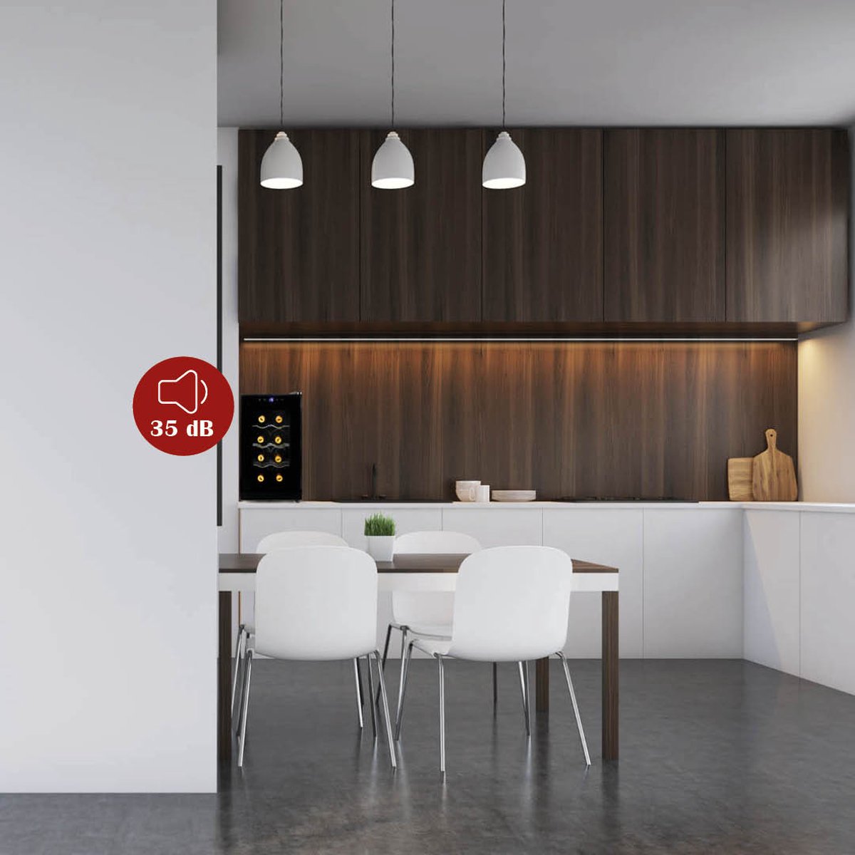 Met een inhoud van 21 liter en ruimte voor maximaal 8 flessen, zorgt deze wijnkoelkast dat jouw wijn altijd op de juiste temperatuur is. De metalen rekjes maken het mogelijk om de flessen horizontaal op te bergen, wat uitdroging van de kurk voorkomt en de kwaliteit van je wijn langdurig bewaart. Of je nu een doorgewinterde sommelier bent of simpelweg wilt genieten van een koel glas wijn, deze kast past perfect bij jouw wensen.